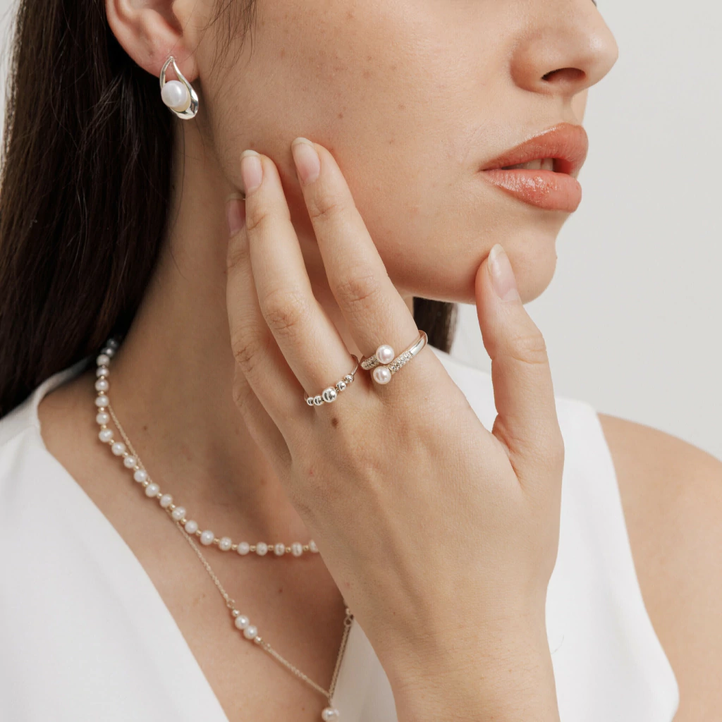 Descubrí el Anillo Piera, una joya de plata 925 con diseño cruzado que permite regular su tamaño para mayor comodidad. En sus puntas, delicadas perlas de río se combinan con microcubics, creando un brillo sutil y elegante.