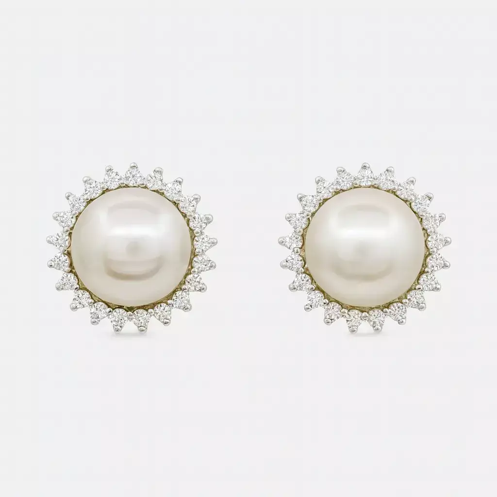 Estos aros de plata 925 con baño en oro combinan la calidez del dorado con la pureza de una perla de río natural, realzada por un delicado marco de micro cubic zirconia que aporta destellos únicos de luz.