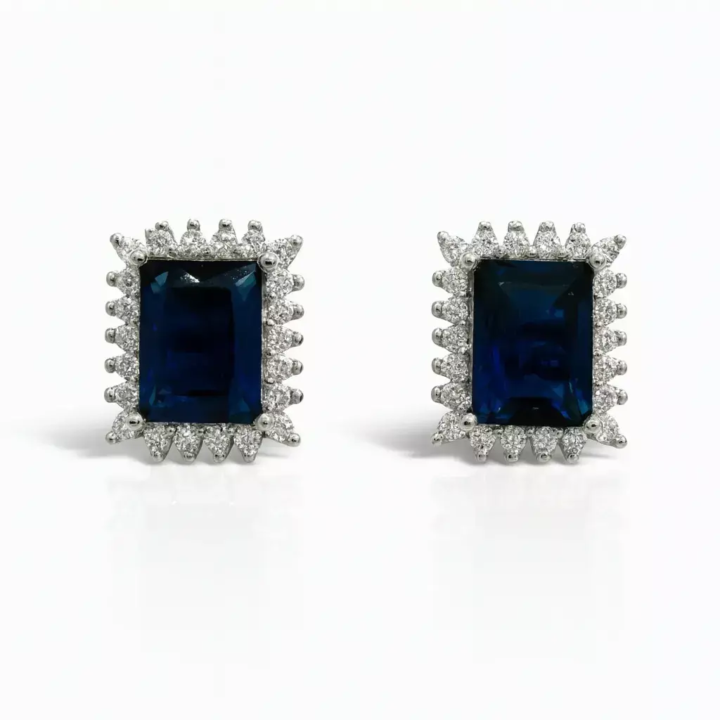Su diseño incluye un cubic rectangular azul intenso, rodeado de microcubics plateados que aportan un toque de sofisticación y elegancia.