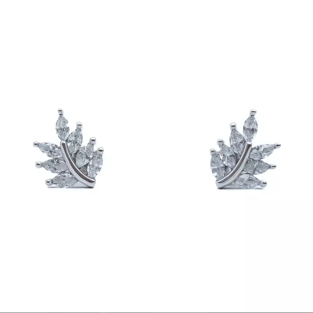 Descubre la belleza de los Aros Pasantes en Plata Rodinada con un delicado cúbic en forma de hoja.