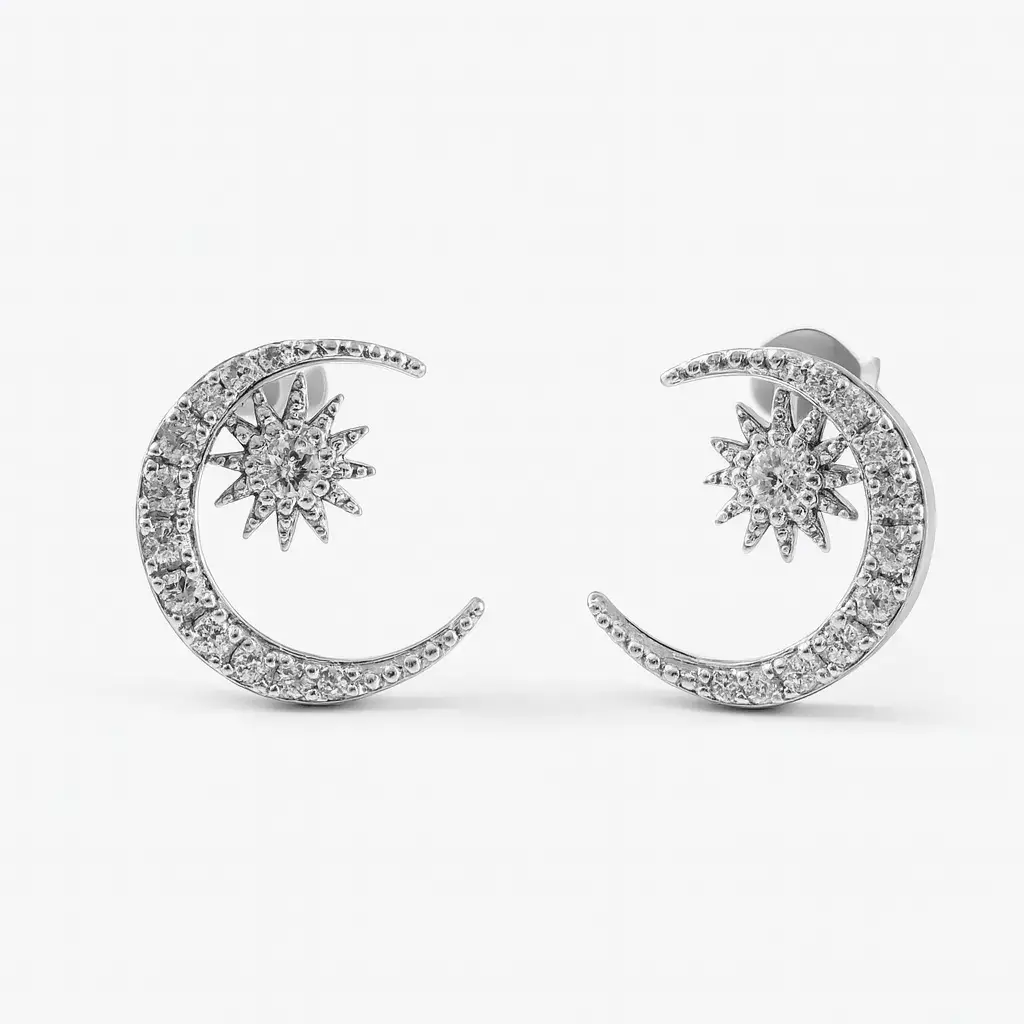 Descubre los Aros Ivett: una joya que resalta tu belleza con un diseño encantador. Estos aros pasantes de plata 925 rodinada presentan una delicada forma de luna y estrella, adornados con microcubic que capturan la luz de manera deslumbrante. Ideales para cualquier ocasión, desde una salida casual hasta un evento elegante.