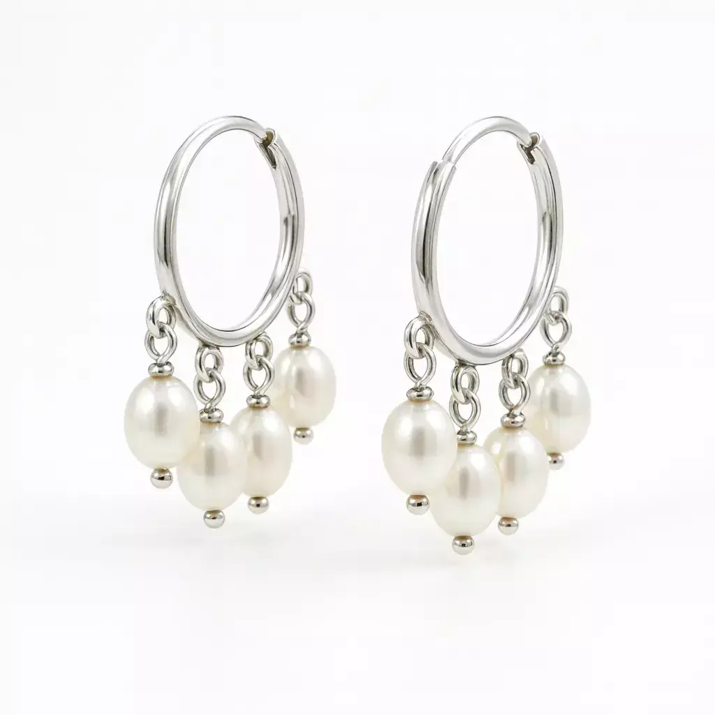 Descubre la belleza de los Aros Macarena, elaborados en plata 925 con delicadas perlas de río colgantes. Estos aros son la elección perfecta para quienes buscan un toque de sofisticación en su estilo diario.