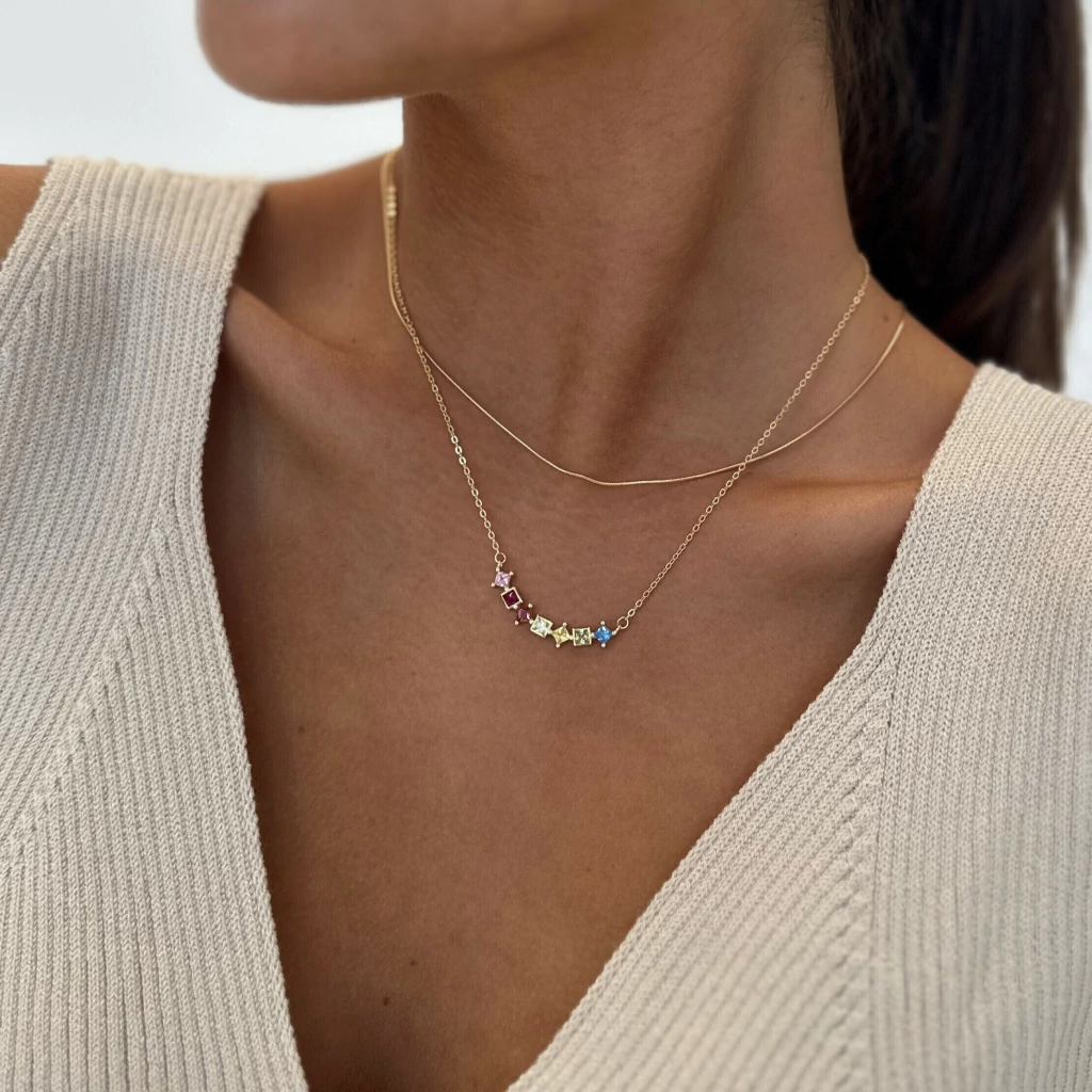 Este impresionante accesorio destaca por su combinación de cubics de colores, que aportan un brillo vibrante a tu look. Ideal para cualquier ocasión, desde una salida casual hasta un evento especial, este choker es un must-have en tu colección.