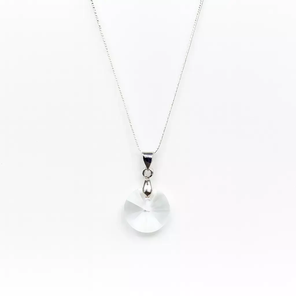 Su diseño con un dije circular cónico, engarzado con un elegante drop de plata, aporta un toque de distinción a cualquier atuendo. Ideal para ocasiones especiales o para realzar tu look diario, esta cadena es una declaración de estilo y elegancia.