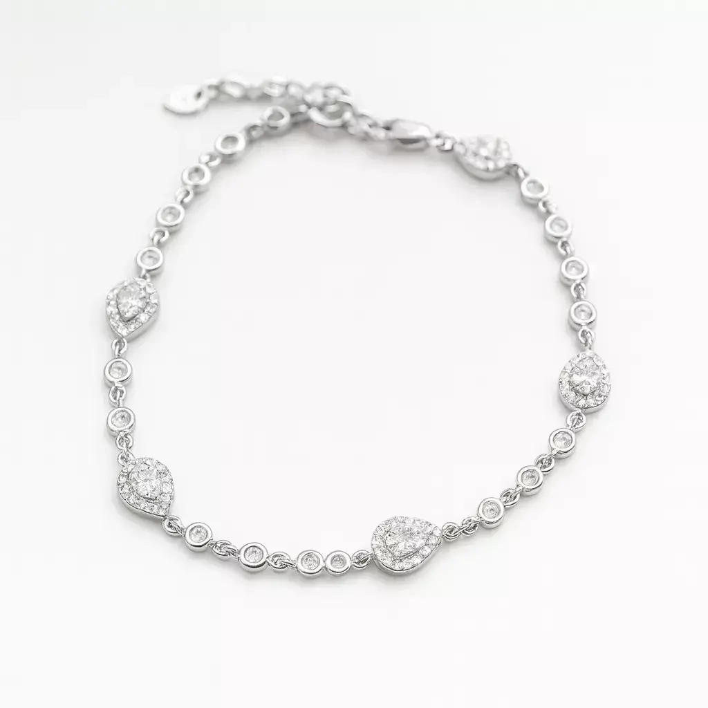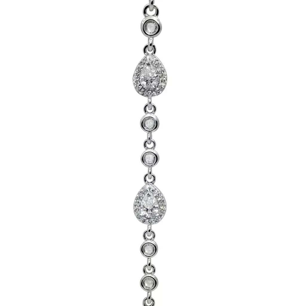 Pulsera Olimpia: una joya de plata 925 rodinada que destaca por sus delicados cubics en forma de gota plateadas, diseñados para aportar un brillo sutil y sofisticado.
