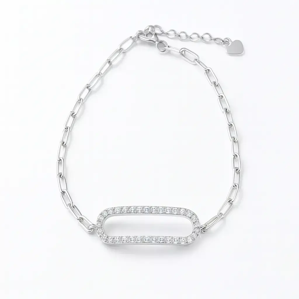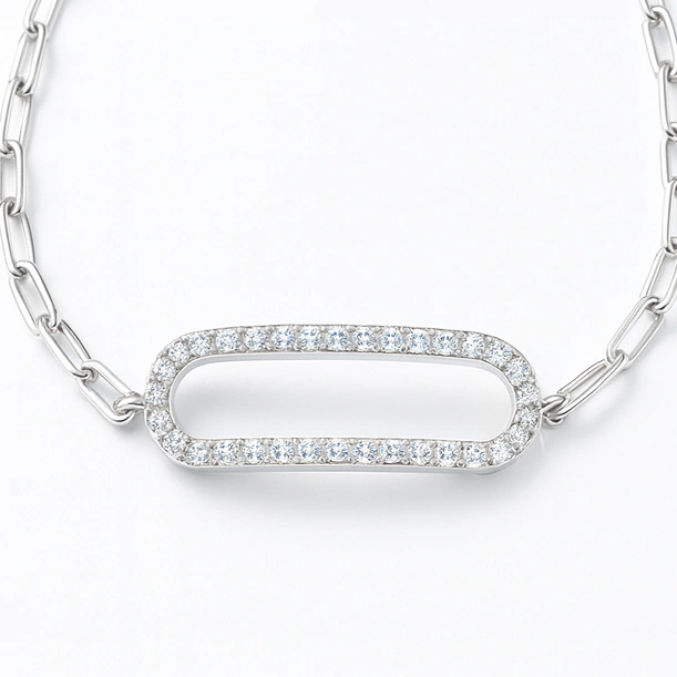 Pulsera Enia: Un toque de elegancia en tu muñeca. Esta pulsera de plata 925 rodinada destaca por su hermoso detalle ovalado en cubic zirconia, que brilla con intensidad en cada movimiento.