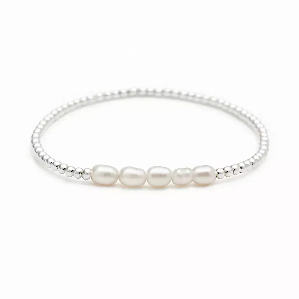 Su diseño destaca por las perlas de río al frente, que aportan un brillo natural y sofisticado. Ideal para realzar cualquier look, esta pulsera combina la delicadeza y la frescura que buscás para tus momentos más especiales.